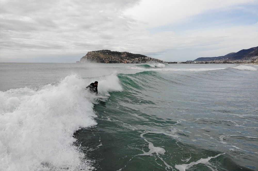 "Akdeniz'de çıkan fırtınalardan sonra burada güzel dalgalar yakalıyoruz"