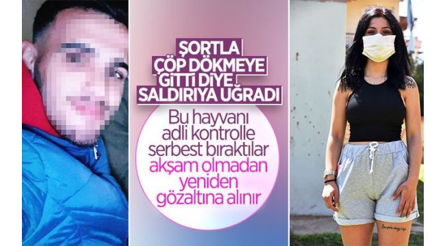Antalya'da şortla çöp dökmeye giden Elif Ülkü Eroğlu'na hakaret edip, saçından sürükleyerek döven M.T., adli kontrolle serbest kaldı.