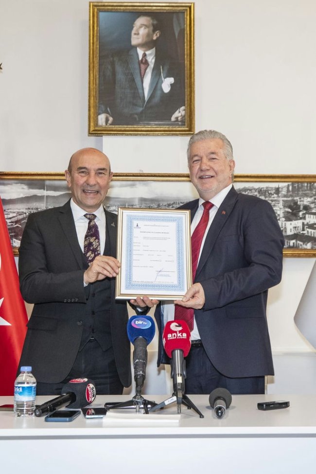 Başkan Soyer, “Bu bir tane belge ama arkasında çok emek var. Çok şükür bugüne geldik. Çok mutlu ve gururluyum” dedi. İESOB Başkanı Yalçın Ata ise 25 yıllık bir sorunun çözüldüğünü belirterek “Esnaf için hakkınız ödenmez. Cansınız” diye konuştu.