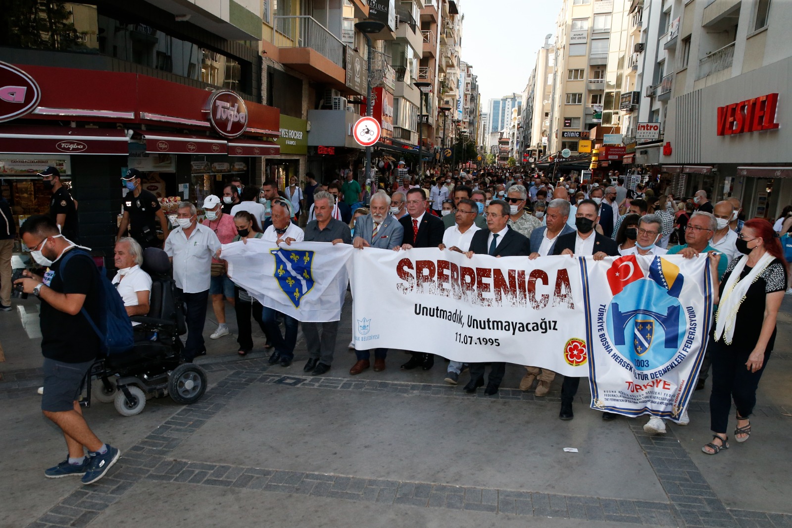 Konak Belediyesi Meclis Üyesi ve Gültepe Makedonya Göçmenleri Kültür ve Dayanışma Derneği Başkanı Birol Özkardeşler ise Srebrenitsa’da çoğu kadın ve çocuk 8 bin 372 savunmasız insanın Sırplar tarafından katledildiğini hatırlatarak, “Bosna’da 26 yıldır bitmeyen bir acı yaşanmakta. Emperyalist güçlerin oyunu bu bölgede var oldukça acı ve gözyaşı maalesef bu bölgede hiç eksik olmayacak. Srebrenitsa’yı hiç unutmadık, unutmayacağız” diye konuştu.