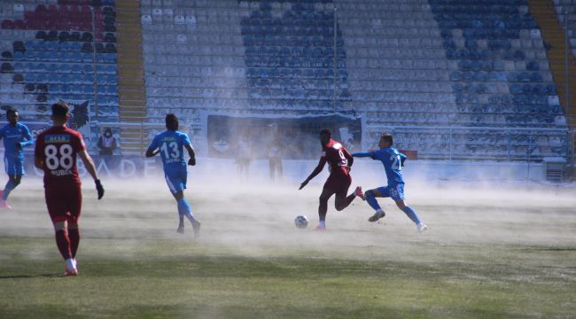 Erzurum Kazım Karabekir Stadyumu'nda alttan ısıtma sisteminin çalışmasıyla ortaya 'sis' gibi görüntüler çıktı.