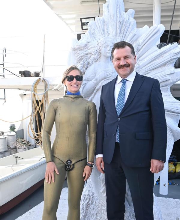 Su Altı Heykel Galerisi'nin ilk ziyaretçisi Şahika Ercümen oldu