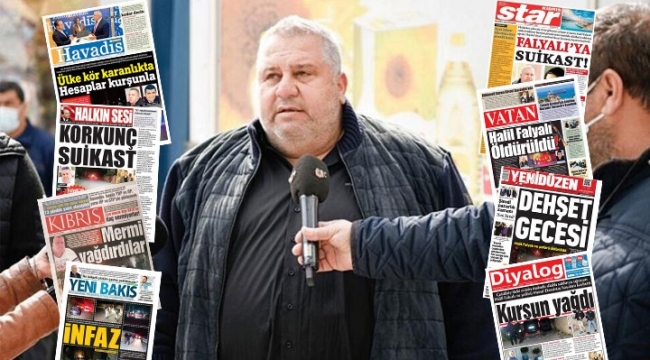 Kuzey Kıbrıs’ta Halil Falyalı’nın silahlı saldırıda öldürülmesi ülkede gazetelerin manşetlerinde yer buldu. Falyalı’nın profesyonel bir suikastla hedef alındığını belirten ve cinayetin ayrıntılarına dair bilgi veren gazeteler, “Ülke kör karanlıkta” değerlendirmesinde bulundu.