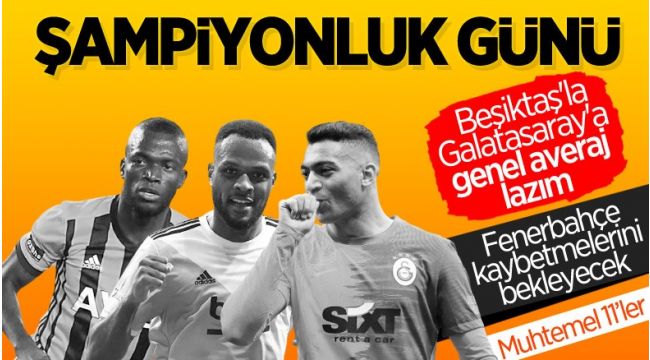 Bugün Beşiktaş, Göztepe deplasmanına çıkacak. Beşiktaş'ın şampiyon olabilmesi için Göztepe'yi yenmesi gerekiyor. Galatasaray'ın genel averajda 2 golle önünde olan Beşiktaş, Galatasaray'ın Yeni Malatyaspor maçında puan kaybetmesini de hesap edecek. Eğer Beşiktaş'la birlikte Galatasaray da kazanırsa, bu kez şampiyonluk genel averaja kalacak. Beşiktaş 2 averajlık farkı korursa, şampiyonluğunu ilan edecek. Ayrıca Beşiktaş ve Galatasaray'ın berabere kalması, Fenerbahçe'nin kazanması halinde şampiyonluk üçlü averaja kalacak. Üçlü averajda önde olan Beşiktaş şampiyonluğunu ilan edecek. Averaj ve puan eşitliği halinde ise en fazla gol atan takım şampiyon olacak. Beşiktaş 87, Galatasaray ise 77 gol kaydetti.