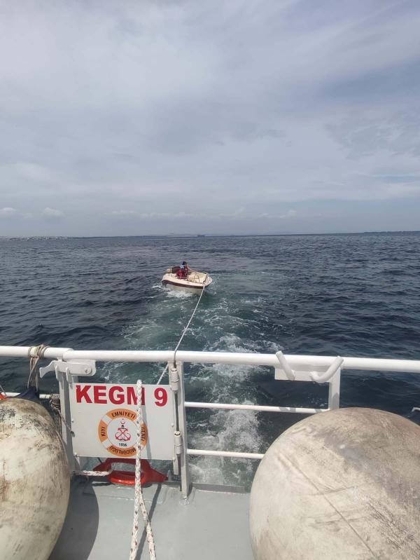 ÇANAKKALE Boğazı'nda makine arızası nedeniyle sürüklenen içinde 2 kişinin buunduğu tekne, 'KEGM-9' hızlı tahlisiye botu ile yedeklenip, barınağa çekildi.