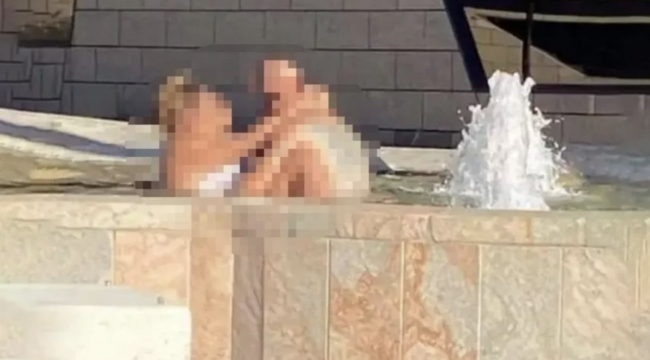 Bir çift, meydandaki süs havuzunun içinde güpegündüz cinsel ilişkiye girmeye başladı.