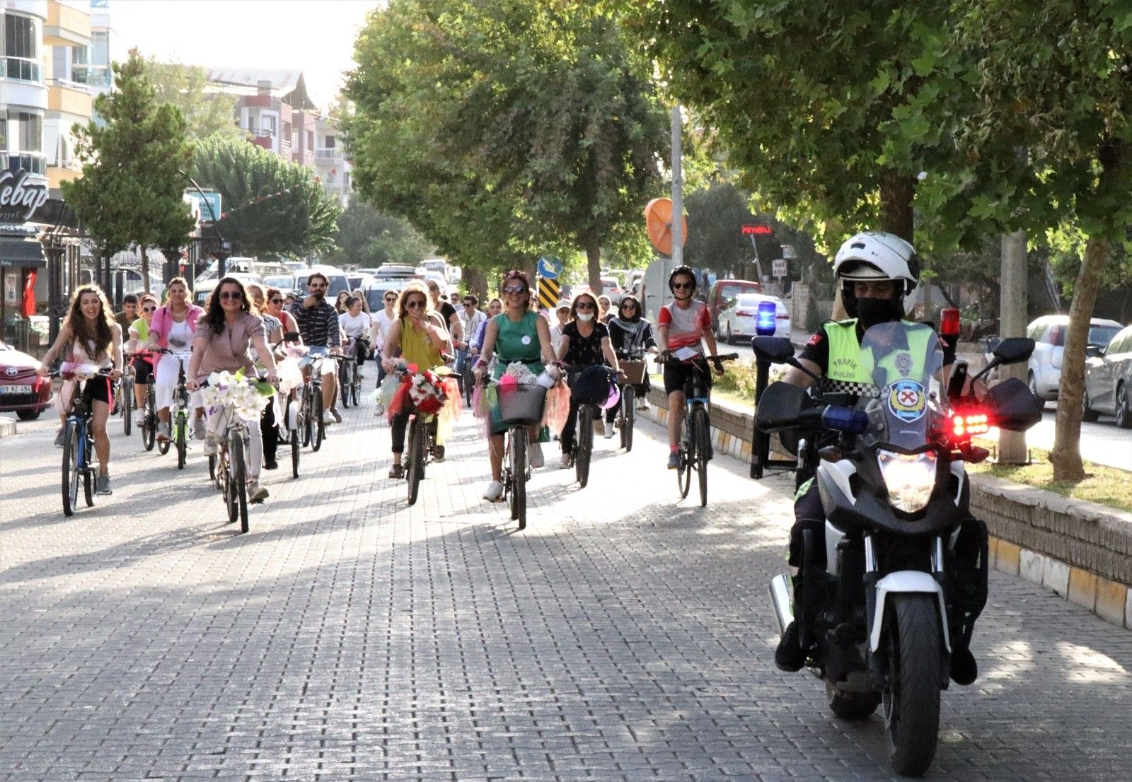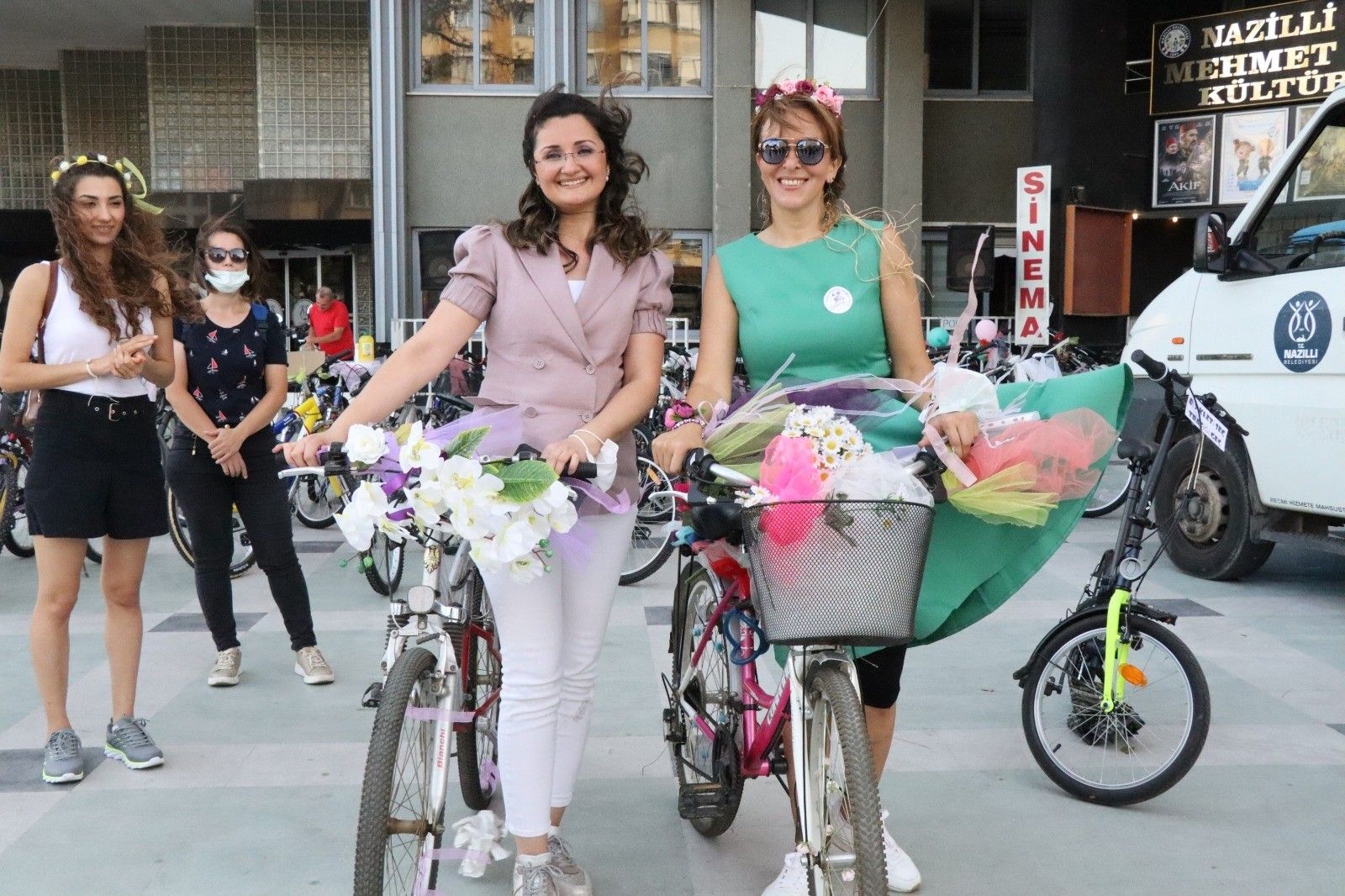 Bisiklet kullanımını özendirmek, ses kirliliğinin yanı sıra otomobillerin doğaya verdiği zarara dikkat çekmek için 9. kez toplanan kadınlar, şık kıyafetler giyerek Nazilli Belediyesi sponsorluğunda kentin dört bir yanında bisiklet turu yaptı.