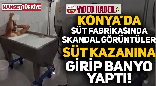 Konya'da üretim yapan bir süt fabrikasında skandal görüntüler ortaya çıktı. Fabrikada çalışan bir şahıs, süt kazanının içine girerek banyo yaptı.