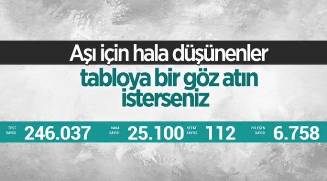 Sağlık Bakanlığı, son 24 saatte 112 kişinin korona virüsten hayatını kaybettiğini, 25 bin 100 yeni vakanın olduğunu açıkladı.