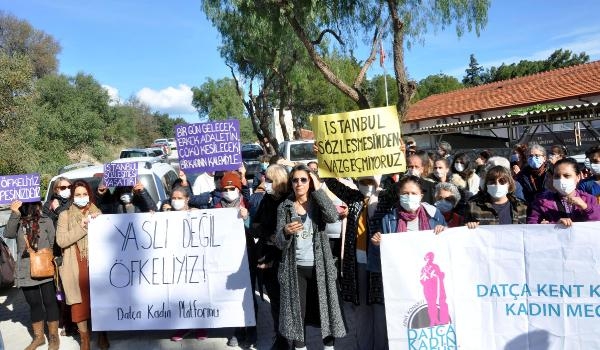 MUĞLA'nın Datça ilçesinde, 2 ay önce bir kadına yönelik nitelikli cinsel istismarda bulunduğu iddiasıyla tutuklanan O.G.'nin (24) adli kontrol şartı ile serbest bırakılmasına Datça Kadın Platformu ve Datça Kent Konseyi Kadın Meclisi üyeleri tepki gösterdi. 'Yaslı değil öfkeliyiz, Erkek adalet değil gerçek adalet' yazılı dövizlerle Daçta Adliyesi önünde toplanan kadınlar yaptıkları basın açıklaması ile karara tepki gösterdi.