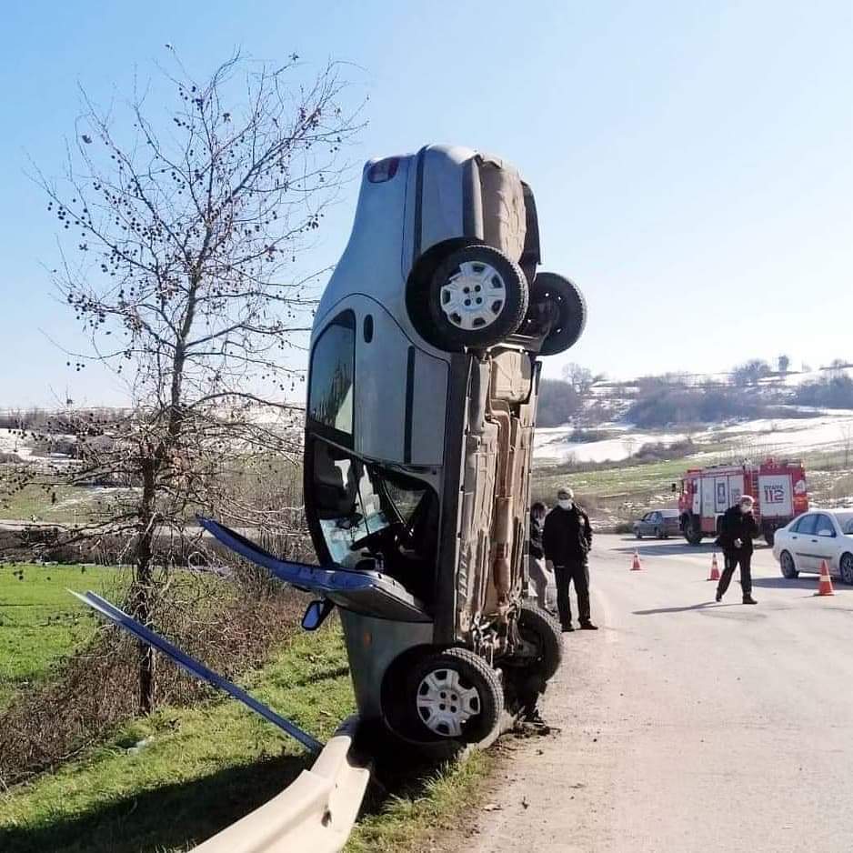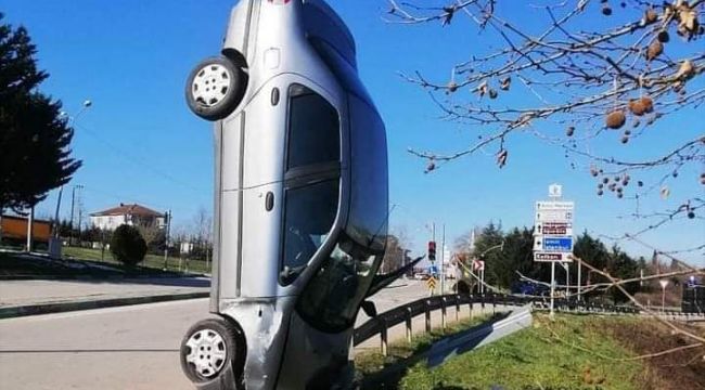 Kocaeli'nin Kandıra ilçesinde, bariyere çarparak dik duran otomobilin sürücüsü yaralandı.