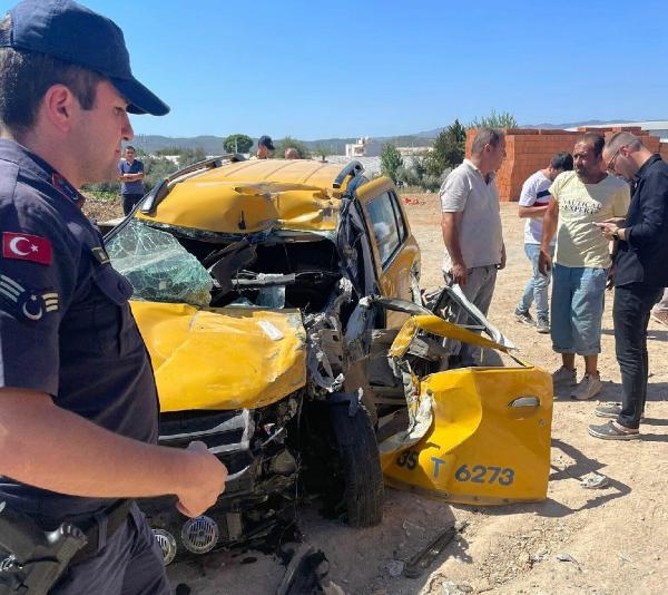 İZMİR'in Menderes ilçesinde kontrolden çıkan taksinin önce çöp konteynerine, ardından da park halindeki kamyonete çarptığı kazada sürücü yaşamını yitirdi, 2'si ağır 3 kişi yaralandı.