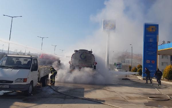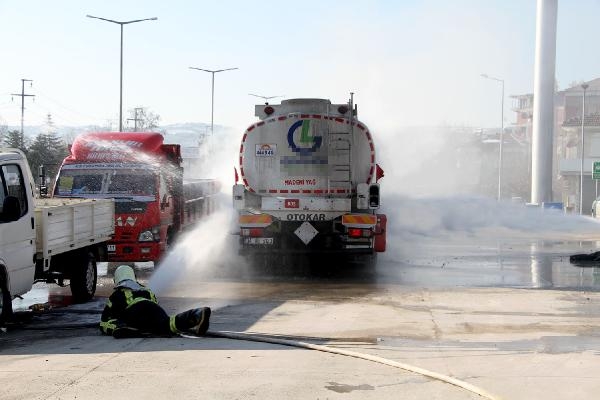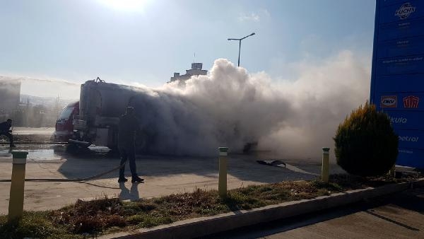 Olay, Manisa'nın Kula ilçesi 4 Eylül Mahallesi'nde bir akaryakıt istasyonunda meydana geldi. Uşak'tan İzmir istikametine seyir halinde olan 34 HB 5123 plakalı tankerin sürücüsü Aziz Tuna (56), aracın lastiklerinden çıkan alevleri fark edip, bir akaryakıt istasyonunda durdu. Tuna'nın yangın söndürme tüpüyle müdahale ettiği lastiklerde büyük bir gürültüyle patlama meydana geldi. Tanker, patlamanın ardından alev aldı. Çevredekilerin ihbarı üzerine olay yerine itfaiye ve sağlık ekipleri geldi. Yangın, itfaiye ekiplerince kısa sürede kontrol altına alındı. Şiddetli patlama nedeniyle vücudunun çeşitli yerlerinden yaralanan sürücü Tuna, Kula Devlet Hastanesi'ne kaldırılarak tedaviye alındı. Tuna'nın sağlık durumunun iyi olduğu belirtildi.