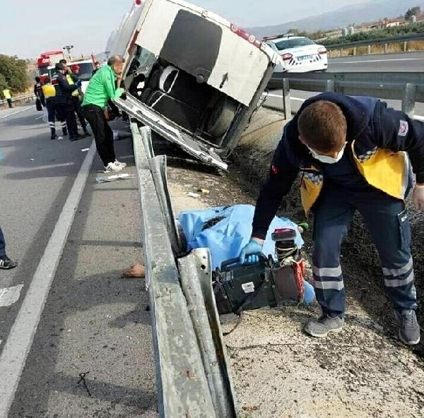 TFF 3'üncü Lig 3'üncü Grup'ta bugün oynanacak olan Bergama Belediyespor- Osmaniyespor Futbol Kulübü maçı için İzmir'in Bergama ilçesine giden konuk takımın taraftarlarını taşıyan minibüs, Manisa'nın Gölmarmara ilçesinde kaza yaptı. Bariyerlere çarpıp, yan yatan minibüsteki 1 kişi öldü, 9 kişi de yaralandı.