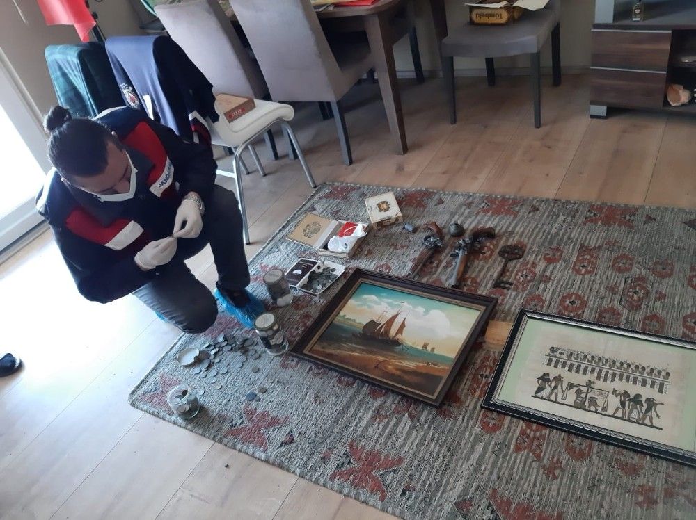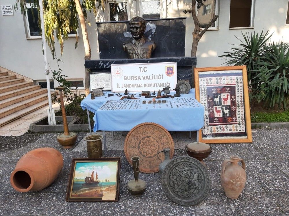 Bursa'nın Mudanya ilçesinde tarihi eser kaçakçılığı yaptığı iddia edilen kişinin evine jandarma tarafından yapılan baskında çok sayıda kaçak tarihi eser ele geçirildi.
