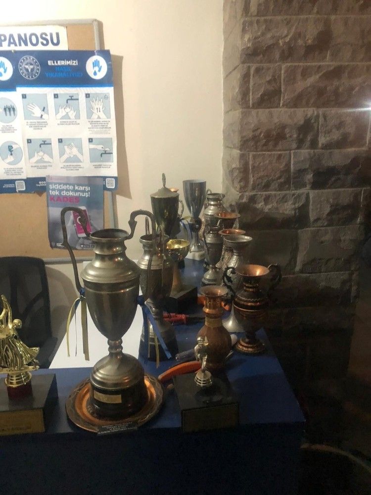 Olay, Camikebir Mahallesi Bozkurt Sokak üzerinde saat 04.30 sıralarında meydana geldi. Edinilen bilgiye göre, Kuşadası Polis Merkez Amirliği'ne bağlı bekçiler devriye görevi sırasında, iki kişinin çuval taşıdıklarını gördü ve durdurdu. GBT'lerine bakılan iki kişinin M.A.(46) ve E.Ç.(43) olduğu tespit edildi. Durdurulan iki kişinin şüpheli hareketler sergilemesi üzerine ellerindeki çuvalı açtırtan bekçiler gördükleri manzara karşısında şok oldu. Yaklaşık 20 tane tarihi müsabaka kupası gören bekçiler, iki şüpheliyi gözaltına aldı. Yapılan araştırmalar sonucunda müsabaka kupalarının Kuşadası Şehit Kaya Aldoğan Lisesi'nin müzesinden çalındığı tespit edildi. Gözaltına alınan M.A. ve E.Ç.'ye sokağa çıkma kısıtlamasına uymadıkları gerekçesiyle 3 bin 150'şer Lira ceza kesilirken iki şüpheli hakkında ayrıca adli işlem başlatıldı.