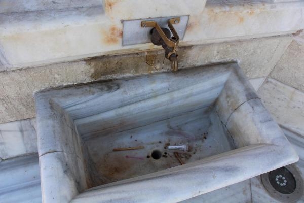 Tarihi yapının çevresi ve muslukların su tekneleri ise vatandaşlar tarafından kirletiliyor. Her gün onlarca turistin önünde poz verip, fotoğraf çektirdiği tarihi yapının etrafına atılan kuruyemiş kabukları dikkati çekerken, çeşmelerin su teknesine ise kullanım amacı dışında karton bardak, su şişesi gibi malzemelerin atıldığı görüldü.