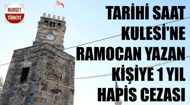 Antalya’nın tarihi simgesi saat kulesine sprey boyayla “Ramocan” yazan bir kişi, bir yıl hapis cezasına mahkum edildi.