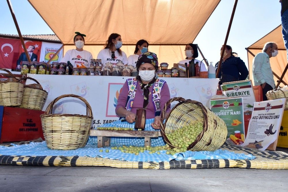 Mersin'in Tarsus ilçesinde iki hafta hizmete giren yeryüzü pazarı, renkli görüntülere sahne oluyor.