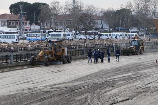 ÇANAKKALE'de Kocabaş Çayı'nın taşması sonucu otopark olarak kullanılan DSİ taşkın alanında sulara gömülen araçlar, çekilmeyle birlikte ortaya çıktı. Belediye ekipleri, bölgede temizlik çalışması başlattı.
