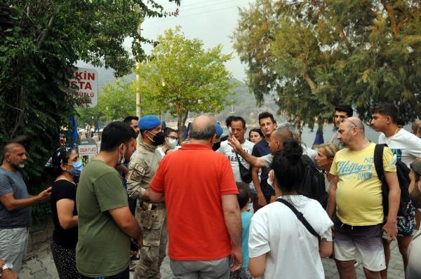 Muğla'nın Datça ilçesinde, alevlerin Kabaklarlı Plajı'na kadar ilerlemesi üzerine jandarma bölgede tahliye kararı aldı.