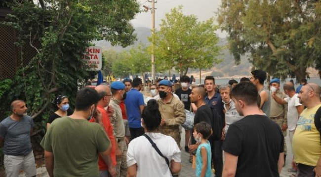 Muğla'nın Datça ilçesinde, alevlerin Kabaklarlı Plajı'na kadar ilerlemesi üzerine jandarma bölgede tahliye kararı aldı.