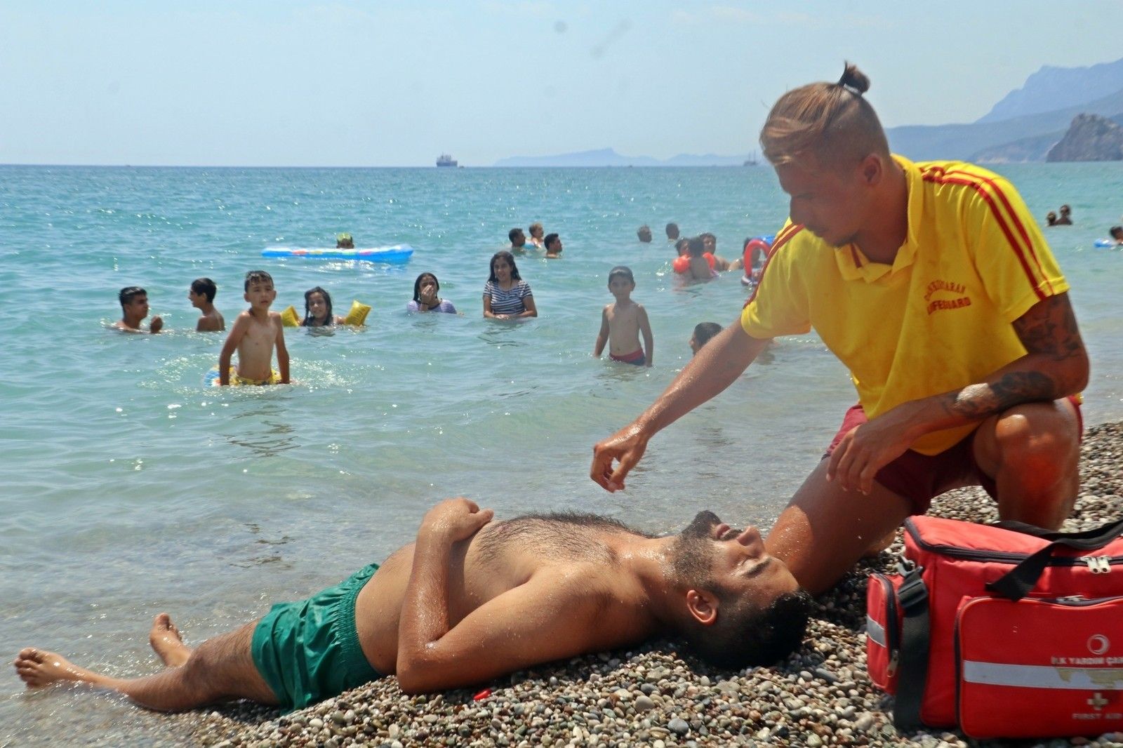 Tatilcilerin arasında boğulma tatbikatı yapıldı