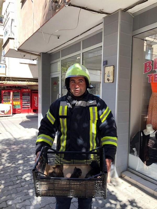 Turgutlu ilçesi Acarlar Mahallesi Yörük Sokak'taki iş yerinin tavanından yavru kedi sesi geldiğini duyan işletme sahibi Seda Alsan, kedilere ulaşamayınca durumu itfaiye ekiplerine bildirdi. İhbar üzerine bölgeye Manisa Büyükşehir Belediyesi İtfaiye Daire Başkanlığı Turgutlu Grup Amirliği ekipleri sevk edildi. Olay yerine gelen ekipler, iş yerinin tavanını delerek 4 yavru kediyi çıkardı. Yavru kediler, işyeri önünde bir plastik kasanın içine konuldu. Anne kedi ise bir süre sonra yavrularının yanına inip, güvenli bir yere taşıdı. Ekiplere haber veren iş yeri sahibi Seda Alsan, "Yavru kediler yaklaşık beş gündür tavan arasındaydı. Onlara ulaşmamız mümkün olmadı. Ekipler kedileri bulundukları yerden çıkardı" dedi.