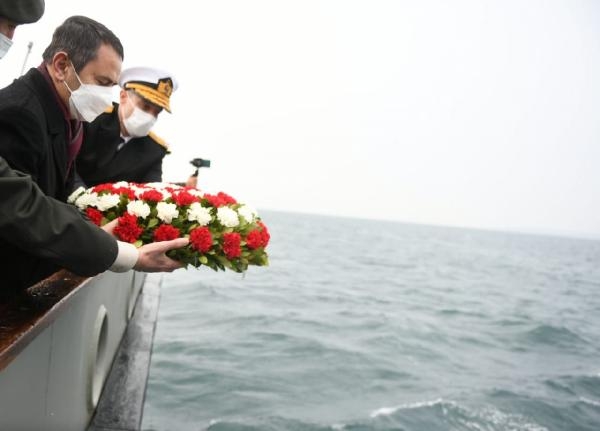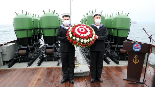 Konuşmanın ardından Çanakkale Valisi İlhami Aktaş ile Çanakkale Boğaz ve Garnizon Komutanı Tuğamiral Mustafa Turhan Ecevit, 107 yıl önce mayın bırakılan noktaya çelenk bıraktı. Daha sonra mayınlara çarparak batan 'Ocean', 'Bouvet', 'Goliati', 'Irresistible' batıklarının bulunduğu bölgeye geçildi. Tören, Vali Aktaş'ın 'Nusret Mayın Gemisi'nin şeref defterini imzalamasıyla sona erdi. (DHA)
