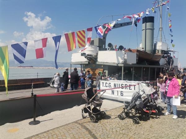 ÇANAKKALE savaşı sırasında döşediği mayınlarla tarihin seyrini değiştiren Nusret Mayın Gemisi, Balıkesir'in Bandırma ilçesinde vatandaşların ziyaretine açıldı.