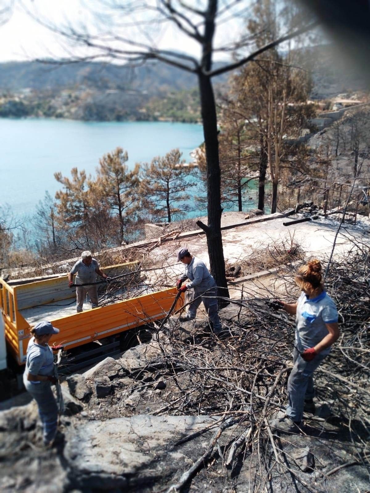 Bodrum Belediyesi Hasar Tespit Komisyonu, yangında zarar gören yurttaşların acil ihtiyaçlarını karşılamak ve gerekli girişimlerde bulunmak için başlattığı çalışmalarda vatandaşların evlerine yakın bölümlerinde ve bahçelerinde bulunan yanmış ağaçların tehlike arz ettiğini belirtmesi üzerine harekete geçti.