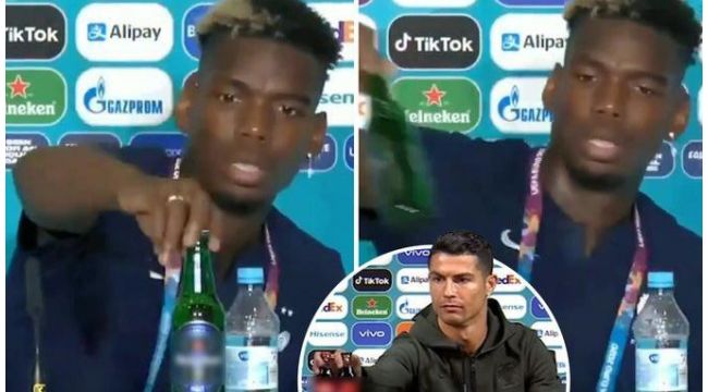 1-0 kazanılan Almanya maçı sonrası basın toplantısına katılan Pogba masanın üzerinden duran bira markasının şişesini önünden alarak yere koydu. EURO 2020'nin resmi ortağı olan bira markasının kameraların önünden kaldırılması Ronaldo’nun kola tepkisi gibi gündem yarattı.