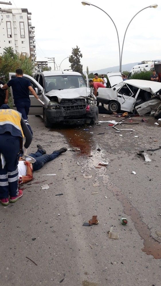 Çaylı Mahallesi Cennet Ana Caddesi üzerinde meydana geldi. Ali E. (34) idaresindeki 80 EE 399 plakalı Fiat Şahin marka orta refüjü aşarak karşı yönden gelen Sabri T. (66) idaresindeki 31 PF 450 plakalı Fiat marka hafif ticari araç ile çarpıştı. Çarpışmanın şiddetiyle otomobil adeta iki bölünürken kazada sürücüler ile araçlarda yolcu olarak bulunan 6 kişi yaralandı.