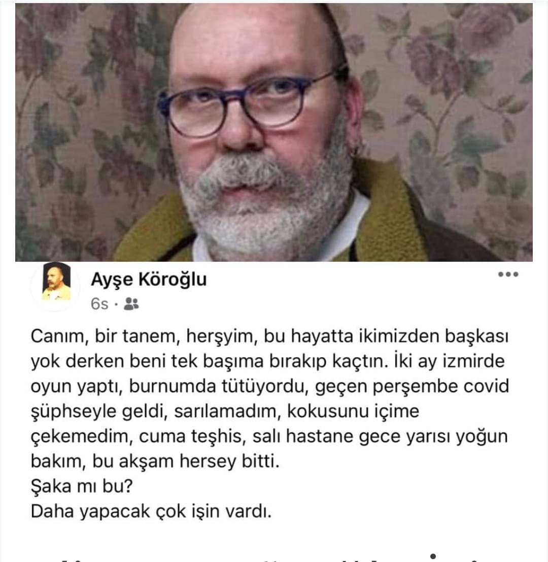 Ali Cem Köroğlu ile birlikte Covid-19’a yakalanan Ayşe Köroğlu’nun kardeşinden 26 gün sonra gelen vefatı tiyatro camiasında üzüntü ve tepkiyle karşılandı.