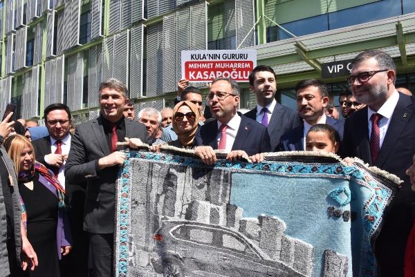 Daha sonra kendisini karşılamaya gelenler ile fotoğraf çektiren Kasapoğlu'na; Manisa Kulalı olmasına ithafen üzerinde TOGG amblemi bulunan, Kula grisi renginde dokuma halı hediye edildi. Kasapoğlu, ardından eşi Ayşe Betül Kasapoğlu, AK Parti Genel Başkan Yardımcısı, İzmir Milletvekili Hamza Dağ ve AK Parti İzmir İl Başkanı Bilal Saygılı ile yerli otomobil TOGG'a binerek, tanıtım toplantısının yapılacağı otele gitti.(DHA)