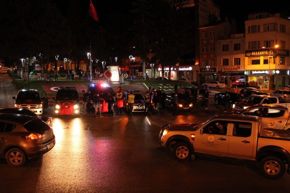 Sirenler eşliğinde başlayan konvoy ilçenin Siteler Mevkiine kadar büyük bir coşku içinde devam etti. Konvoya katılanlar aynı heyecan ve coşku içinde geriye dönüş yaparak ilçenin Cumhuriyet Meydanına geldi. Burada çekilen hatıra fotoğraflarıyla Cumhuriyet Konvoyu sona erdi.