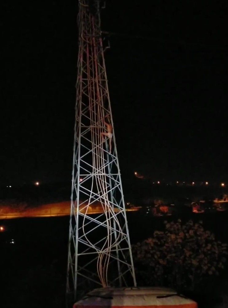 Trafik cezası yiyince yarı çıplak yüksek gerilim hattına çıktı