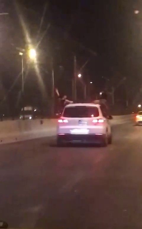 Aksu-Serik karayolunda kaydedilen bir görüntüde ise hareket halindeki otomobilin sağ ve sol camlarına oturan iki kadının dans etmesi tehlikeye davetiye çıkardı. Tehlikeli yolculuğu görüntüleyen kişi ise, "Bunlar kafayı yemiş sanırım, tehlikeli hareketler yapıyorlar" diye şaşkınlığını gösterdi.