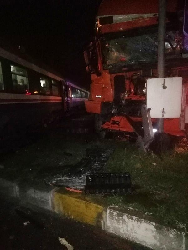 Trene çarpan TIR'ın şoförü yaralandı