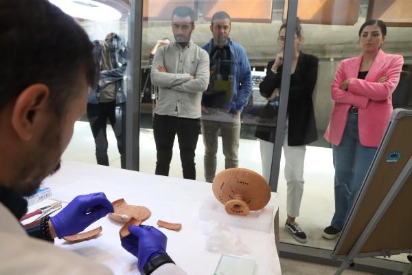 Troya Kültür Yolu Festivali kapsamında yer alan 'Perdeler Açılıyor' etkinliğinde Troya Müzesi, restorasyon ve konservasyon laboratuvarına gelen ziyaretçiler, antik kent kazıları ile çeşitli yollarla elde edilmiş tarihi eserlerin restorasyon ve konservasyon süreçlerini canlı izledi.