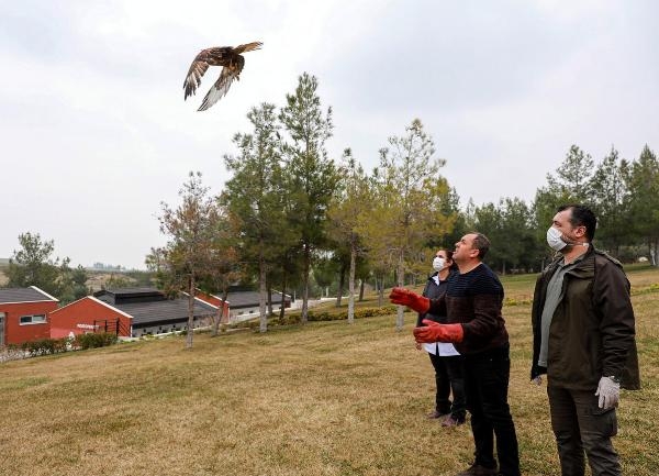 Tüfekle vurulan kızıl şahin, tedavi sonrası doğaya salındı