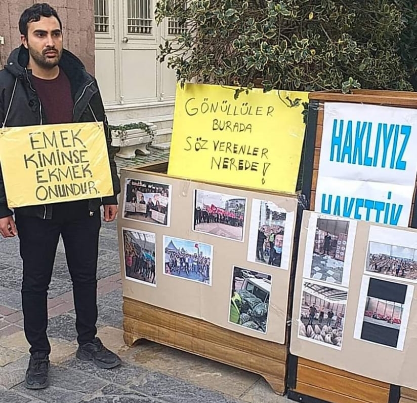 İşe alınmayan 7 gönūllū üniversite öğrencisi ile eylem yapan Tolga Akdemir, "Aşkla Tunç Soyer Gönūllūleri olarak bizi çalıştırdılar, iş sözū verdiler ama bizimle işleri bitince būtūn kapıları yūzūmūze kapattılar. Emek verdik ama karşılığını alamadık" dedi.