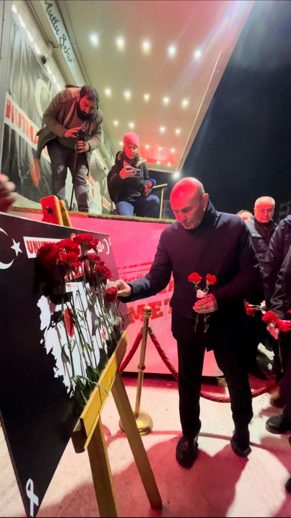 İzmir Büyükşehir Belediye Başkanı Tunç Soyer, “Acımız çok taze, çok kısa süre geçti. Deprem öldürmüyor aslında, cehalet ve ihanet öldürüyor. Daha birkaç hafta önce Japonya'da benzer şiddette deprem oldu 286 kişi öldü. Burada on binlerin öldüğünü biliyoruz. Japonlar kadar yaşama hakkı yok muydu bizim insanlarımızın? Deprem bölgesinde, kuşağında yaşayan bir ülkeyiz. Maalesef ülkeyi yönetenler hiçbir zaman bunun idrakinde olmadıkları için bu kadar kayıp verdik. Dilerim bundan sonra gelecekler bu bilinçle insanların en temel yaşam hakkına saygı duyarak, koruyarak devleti yönetirler” diye konuştu.