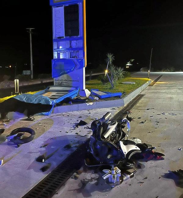 MUĞLA'nın Milas ilçesinde, bir akaryakıt istasyonunun tabelasına çarpan motosikletin sürücüsü Halil Mıstık (21), hayatını kaybetti. Kaza anı bir iş yerinin güvenlik kamerasına yansıdı.