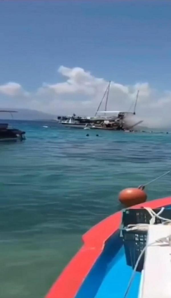 Yangın, sahildeki bir kişi tarafından cep telefonu kamerasıyla kayda alındı. Görüntülerde, dumanlar yükseldikten sonra canlarını kurtarmak için denize atlayanlar ve söndürme çalışmaları yer aldı. Olayla ilgili soruşturma başlatıldı.