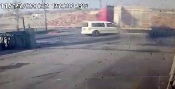 MANİSA'nın Turgutlu ilçesinde, bir fabrikadan ana yola çıkan TIR'a çarpan hafif ticari araçtaki 3 kişi yaralandı. Kaza, fabrikanın güvenlik kameralarına yansıdı.