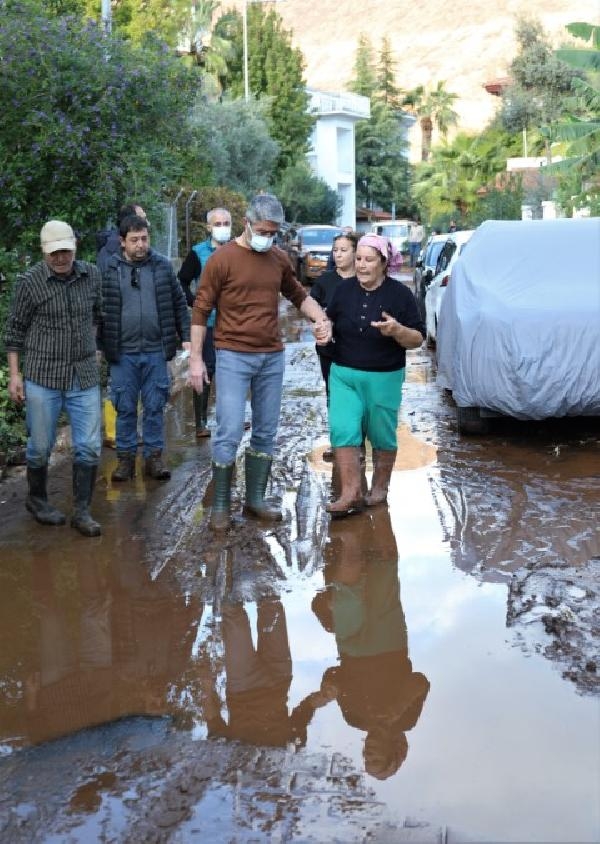Sağanak yağmur sonrası belediye ekipleri evleri su basan ve mağdur olan vatandaşlara yardımcı olmak için seferber oldu. Marmaris Belediye Başkanı Mehmet Oktay, İçmeler Mahallesi'nde evleri su basan vatandaşlarla görüştü.