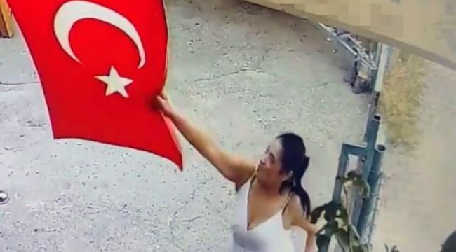 Bu anlar bayrağın asılı olduğu iş yerinin güvenlik kamerasına da anbean yansırken, polisin eşkalini ve kimliğini belirlediği kadının yakalanması için çalışma başlatıldı.