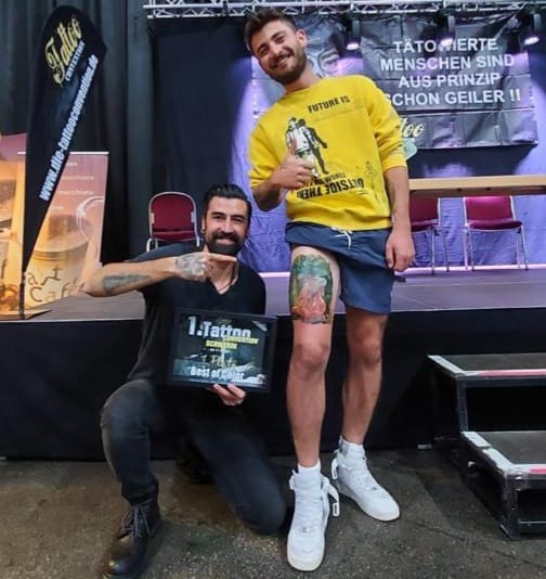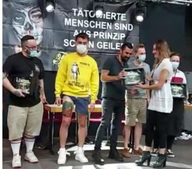 Datçalı dövme sanatçısı Emre Eren, Almanya’da düzelenen, dünyanın dört bir yanından ünlü dövme sanatçılarının biraraya geldiği dövme fuarında,yaklaşık 40 kişinin katıldığı yarışmada renkli-realistik dövme kategorisinde 1'lik ödülü kazandı.