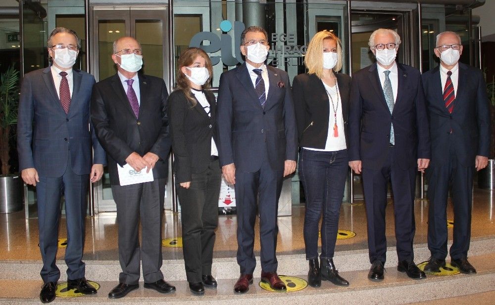 EİB Koordinatör Başkanı Jak Eskinazi, İzmir Ekonomi Üniversitesi Rektörü Prof. Dr. Murat Aşkar, EİB Koordinatör Başkan Yardımcısı Birol Celep, İEÜ Uygulamalı Yönetim Bilimleri Yüksekokulu Müdürü Dr. Betül Öztürk ve Gıda Birlikleri Başkanları, hibrit basın toplantısıyla projenin detaylarını paylaştı.